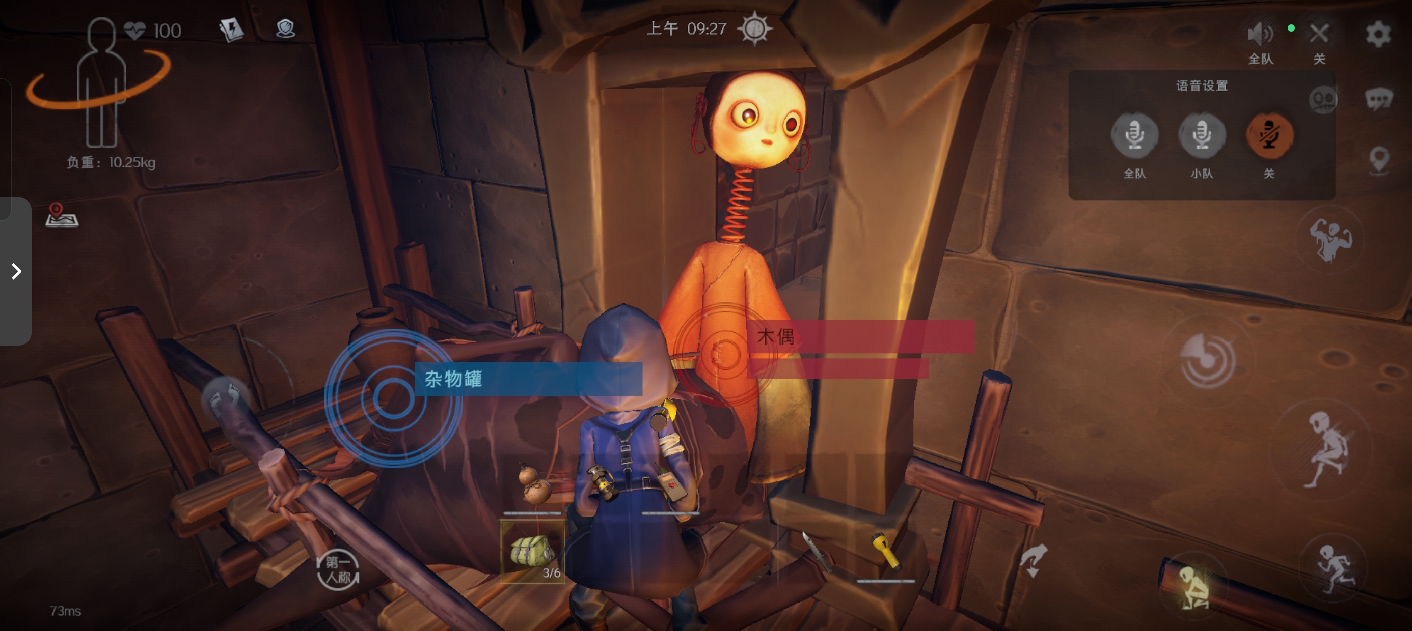 鼓狮:鼓状态时无敌,攻击前敲鼓节奏变快,变身后会攻击其他玩家 —— 赶紧跟队友通报,躲到高处(比如箱子上),它打不到你。