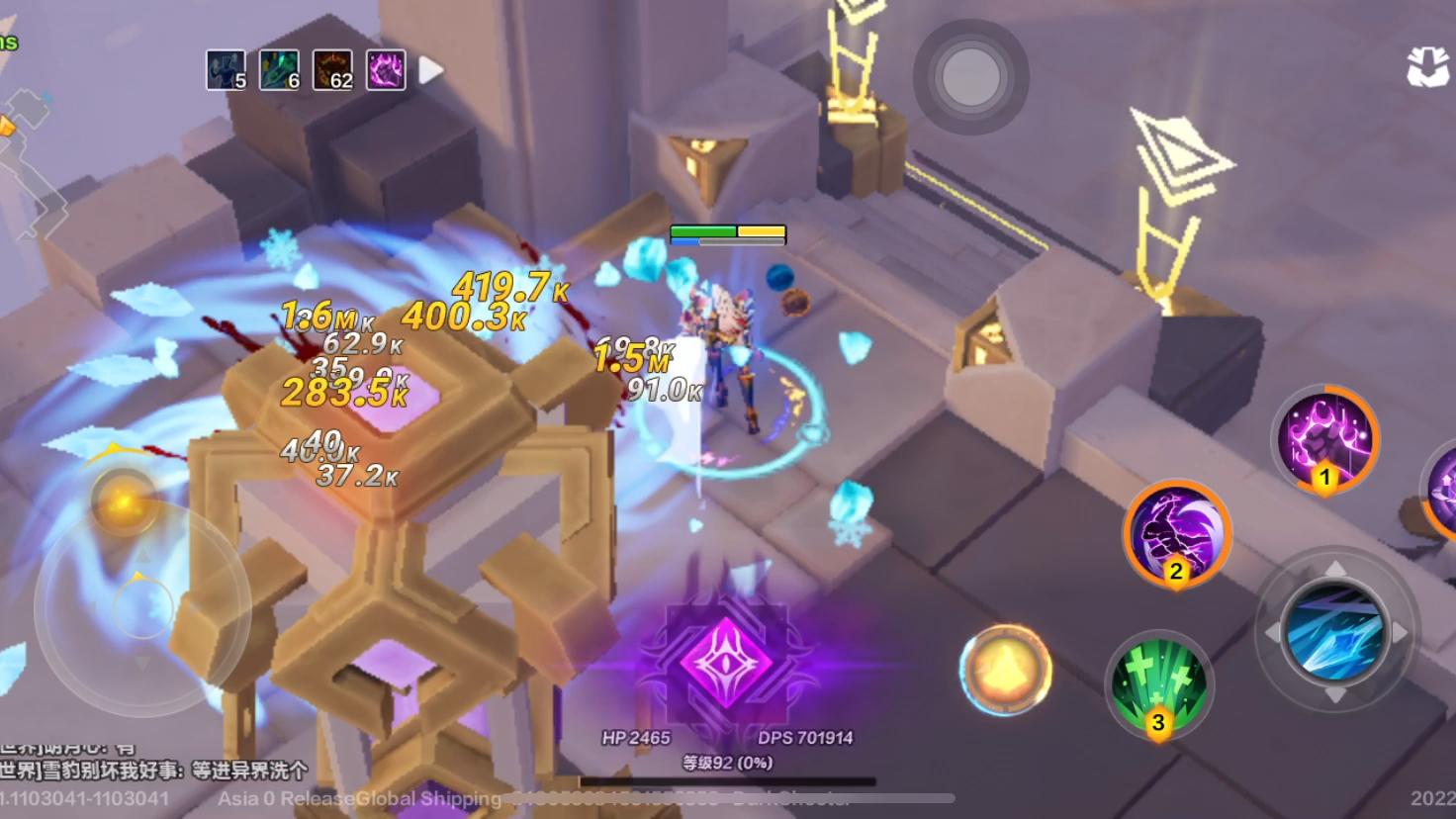 打 BOSS:冰盾扛伤害,闪现躲 AOE,冰锥持续输出 —— 灼烧叠到 5 层后,BOSS 掉血跟瀑布似的;