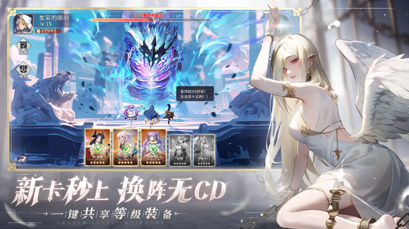 2.熟悉战斗机制:战斗为五卡牌回合制,能量条满后可释放技能,角色技能有群体攻击、单体爆发、治疗辅助等多种类型,需合理搭配。